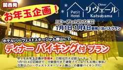 - 「リヴェール勝山」1/1.4朝発1泊プランで年末スペシャル!日程、ルーム数限定で特別価格♪もちろんリフト券付!